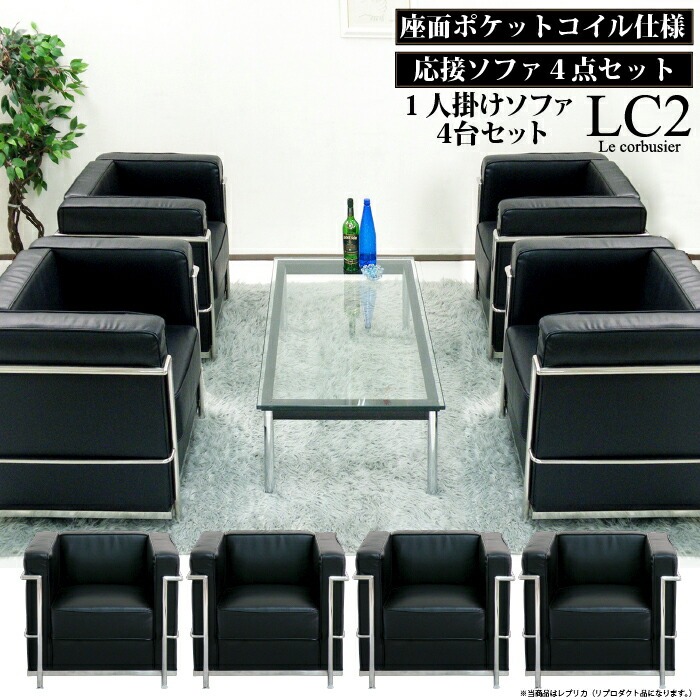 デザイナーズ家具の代表的なモデル「ル・コルビュジェLe Corbusier LC2-grand comfort-」の レプリカ仕様のモダンなリビングソファー【お得な4台セット】のご提案です。 ☆レプリカになります。(LC2正規品ではございません)☆ 「ル・コルビュジェLe Corbusier LC2 -grand comfort-」のレプリカ仕様のモダンなリビングソファーです。マットレスなどにも使用されているポケットコイルスプリングを使用しております。長時間座っていても疲れにくくなっています。合皮最大のメリット!メンテナンスが非常に容易です! 寸法: 1人掛け外寸(約):幅76×奥行き70×高さ68(座面高44)cm 商品重量 1人掛け 1台(約): 23.5kg 主素材: 張り地: PUレザー(一部PVC) 金属フレーム: ステンレス