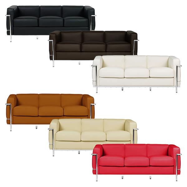 ■法人宛 送料無料 1人掛け+1人掛け+3人掛けセット ル・コルビジェ レプリカ仕様 応接ソファーセット 応接3点セット 合皮張り シングルソフ