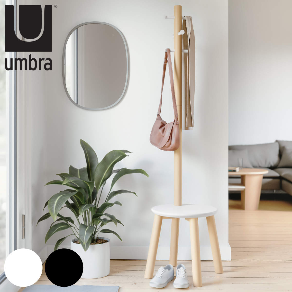 ■umbra アンブラ ポールハンガー スツールコートラック ( コートハンガー スツール イス 椅子 収納 ハンガーポール 洋服掛け コート掛け