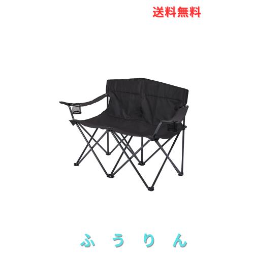 ◆商品名:【限定!】SOLO UP アウトドア チェア キャンプ 2人 ベンチ ダブル アーム イス 折りたたみ 椅子 合金鋼 ブラック 収納袋付き M-2087
