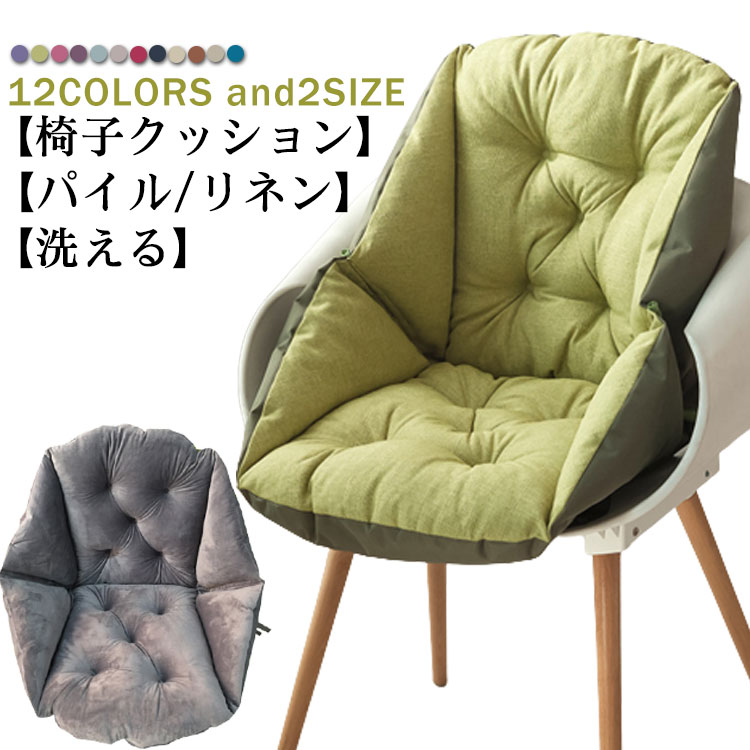 ■椅子クッション 厚みあり 背もたれ付き チェアクッション 座布団 イス用 いす用クッション 腰痛対応クッション リネン 背もたれ 椅子 ク