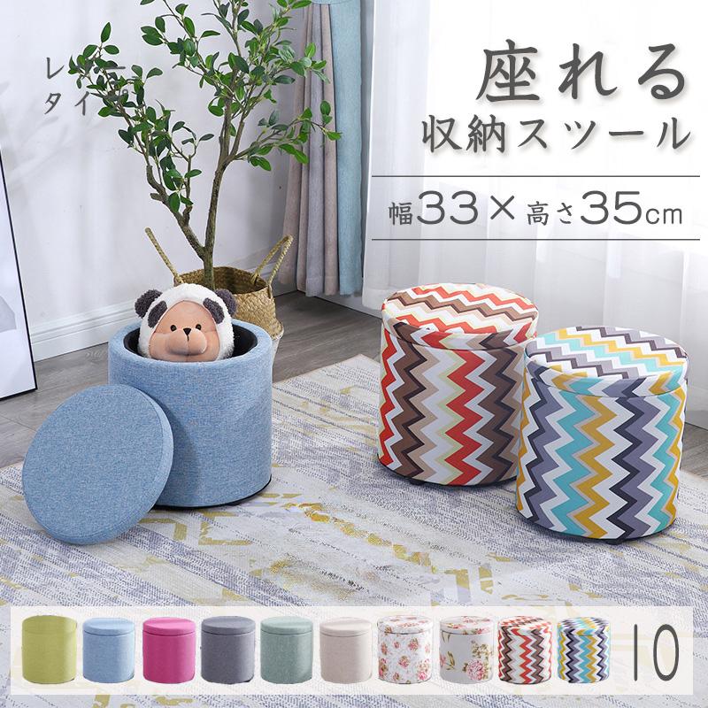収納スツール 収納ボックス 座れる おしゃれ ラウンドスツール 丸椅子 チェア 腰掛け 椅子 イス いす チェアー 1人掛け リビング ボックス 収納付き 蓋付き