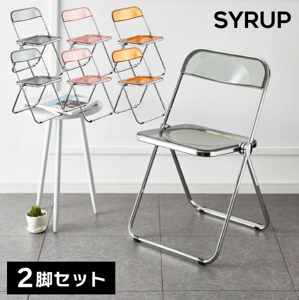 ■2脚セット【メーカー直送】椅子《 クリアチェア 》SYRUP パイプ椅子 折りたたみ スケルトン 透明 ダイニングチェア かわいい スタッキン