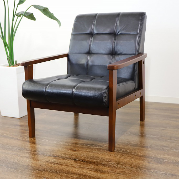 【特長】北欧デザインの木製肘を使用した レトロモダンな1人掛けソファです。コンパクトでおしゃれな レトロ モダンを彷彿させる デザインソファ。天然木 を使った美しい木目 フレームがぬくもりある空間を演出してくれます。狭いお部屋でも圧迫感なく省スペース設計です。【商品名】1人掛けソファ アニータ【サイズ】商品サイズ:幅65×奥行76×高さ77cm座面高:39cm座面奥行:53cm背もたれ高さ:38cm【重量】約10.8kg【材質】・張地/ポリ塩化ビニールシート、綿・芯材/天然木、合板・肘/天然木・座面/Sバネ、ウェービングベルト、ウレタンフォーム・背面/ウレタンフォーム【その他】お客様組立の商品(新品)