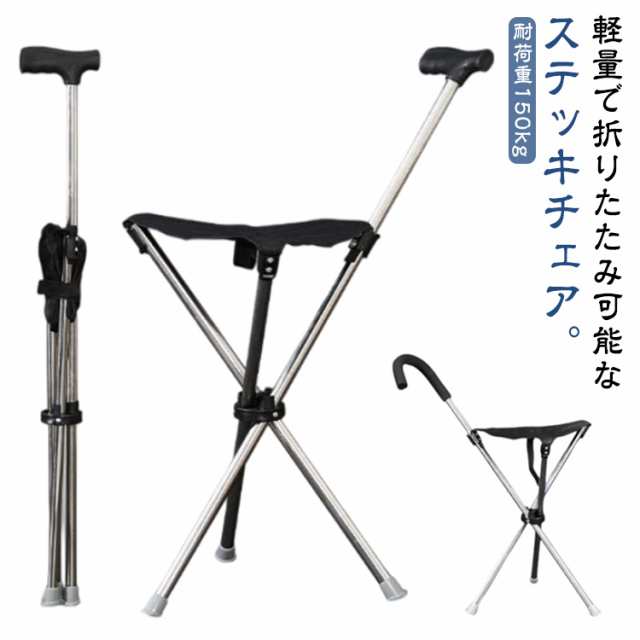 ■ステッキチェア 折り畳み ステッキ チェア 耐荷重150kg 介護 お年寄り 高齢者 三脚 杖 ステッキ チェアー 軽量 折りたたみ イス ステッキ