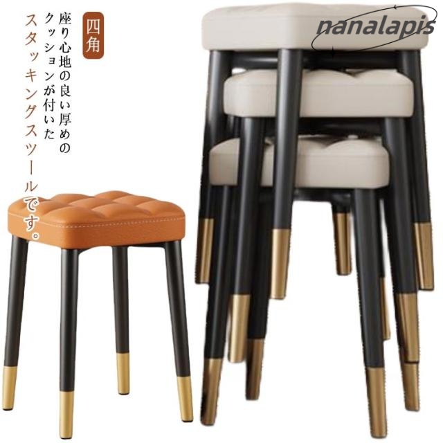 ■スタッキングスツール スツール 椅子 リビング 四角 チェア おしゃれ イス いす ダイニングチェア 背もたれ無し クッション PU 合成皮革