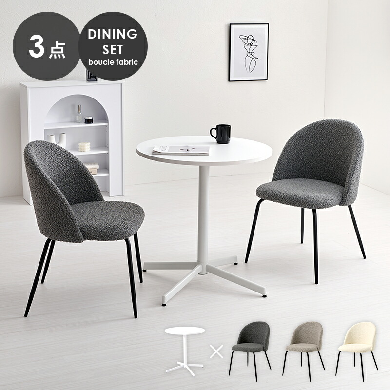 テーブル チェア3点セット カフェテーブル 丸 円形 65cm ダイニングチェア 2脚セット肘無し 2人掛け 布張り ファブリック おしゃれ 北欧 リビング カフェ 飲食店 新生活