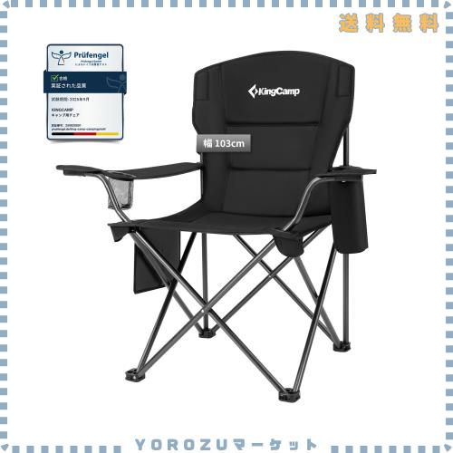 ■KingCamp アウトドア チェア 折りたたみ 椅子 キャンプ 超ワイド103cm 耐荷重136kg 保冷ポケット付き コットン入り 人間工学設計 公園 花