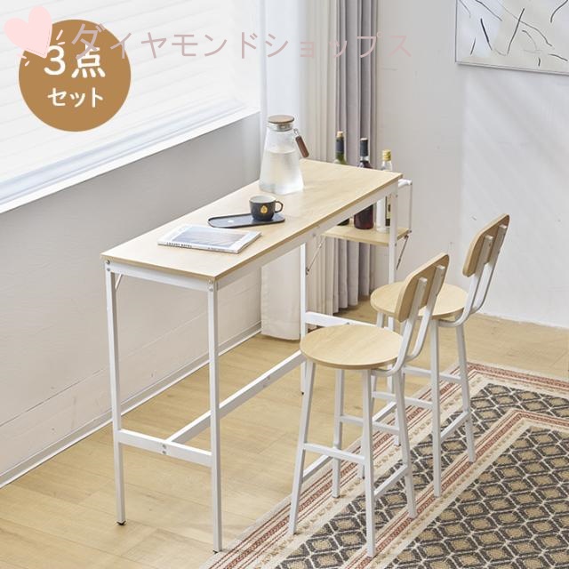 カウンターテーブル スツール 3点セット ハイテーブル 食卓テーブル 木製 カウンター 木製 モダン 北欧 シンプル ダイニングテーブルセット 省スペース おしゃれ