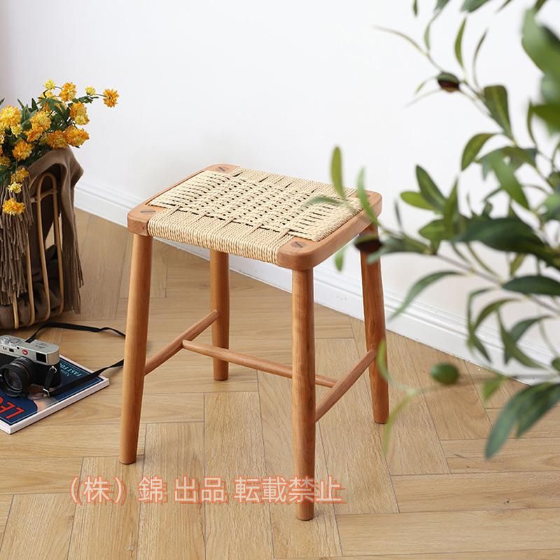 ■スツール 木製 四角 バーチェア 天然木 ラタン 籐 チェリー 無垢材 ウッドスツール ダイニングチェア株式会社錦 リビングチ