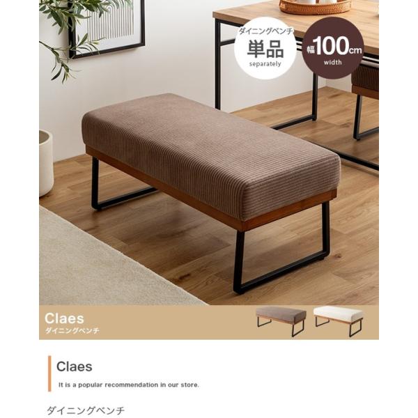 ■ダイニングベンチ 1脚 単品 幅100cm 2人掛け 二人用 ふたりがけ コーデュロイx木目xアイアン スツール ベンチ チェア 2P Claesシリーズ I