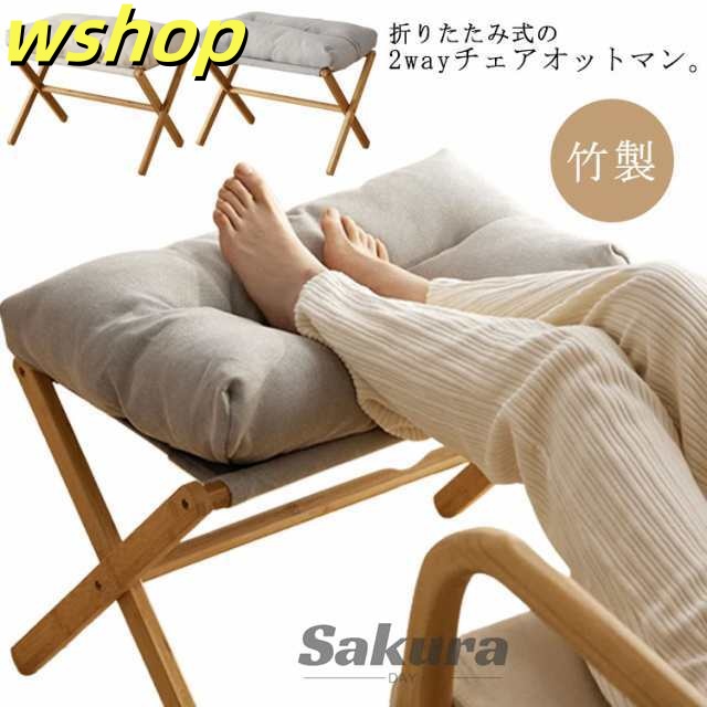 ■【wshop 】オットマン 折りたたみ 竹製 足置き 足台 足置き台 1人掛け 極厚 クッション付き 天然木 スツール ソファスツール 椅子 いす