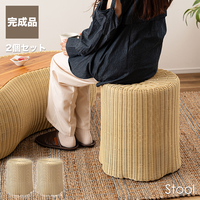 ※北海道・沖縄県・その他離島地域は送料がかかります。(別途見積り)曲線を活かした特徴的なシルエットのコンパクトスツール。 丁寧に編み込まれたPPラタンが美しいグラデーションを作り出します。 フレームにはアルミを使用し軽量な設計となっています。 サイドテーブルとしてもお使いいただけます。 ポリプロピレンなので、お手入れ簡単♪ 【スツール2個セット】 ■素材:ポリプロピレン、アルミ ■サイズ:幅42×奥行40×高さ46cm ■商品重量:約3kg ■静的耐荷重:80kg ■組立:完成品 ■原産地:インドネシア ■梱包サイズ(1個あたり):幅42×奥行42×高さ48cm ■梱包重量(1個あたり):約4.0kg ※常時外置きは出来ません。直射日光・雨ざらしの環境下では劣化が早まりますので、屋根付きのテラス等でご使用ください。