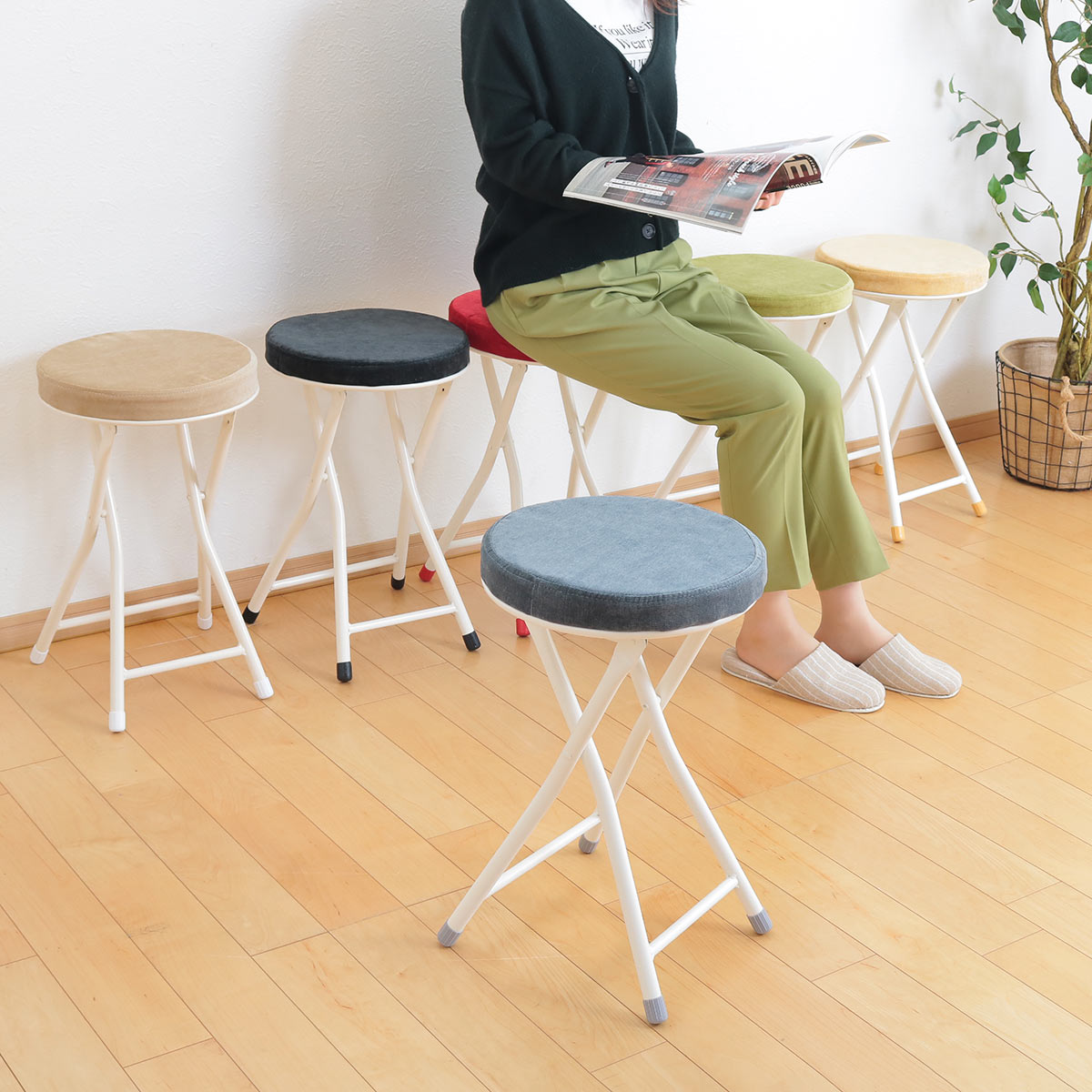■折りたたみ椅子 高さ49cm クッション スツール ( 丸 折り畳み椅子 折り畳みイス 簡易椅子 丸椅子 チェア 椅子 チェアー 折りたたみ 軽量