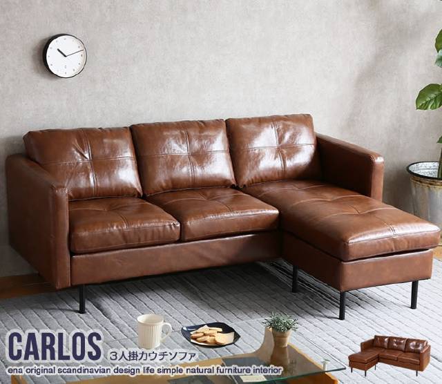 3人掛け カウチ カウチソファ Carlos カルロス ソファ ソファー 3人掛けソファ 3人掛けソファー コーナーソファ カウチソファー スツール オットマン レザー おしゃれ オシャレ家具 インテリア オシャレ 北欧 ヴィンテージ アイアン