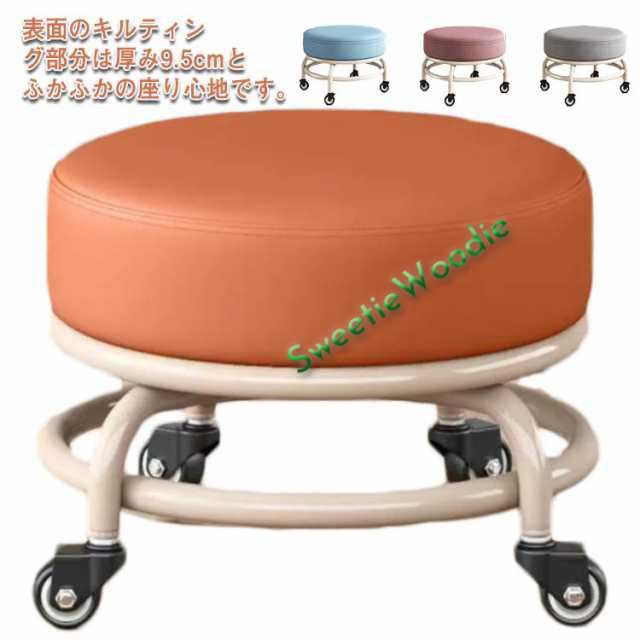 ■回転椅子 ラウンドスツール キャスター付き ミニ 椅子 キャスター 厚手クッション キャスター付き 丸椅子 車輪付き スツール 高さ29cm ク