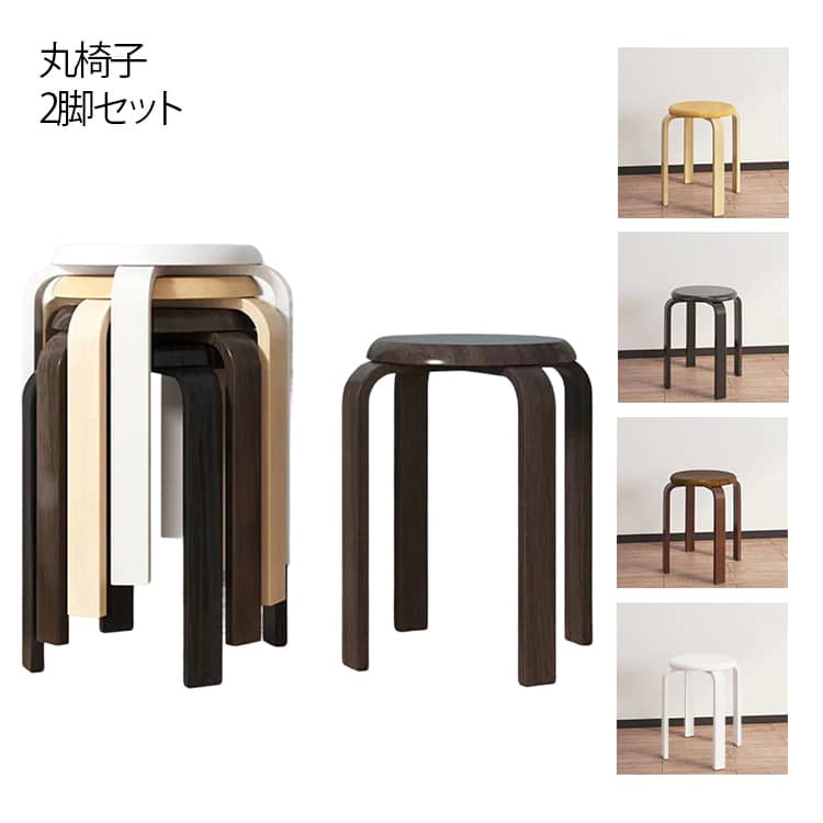 ■丸椅子 2脚セット 木製 椅子 曲脚 イス 曲脚イス 直径30cm 高さ約45cm 曲げ脚 スツール 丸イス 円形 いす 椅子 丸いす 丸椅子 丸イス ス