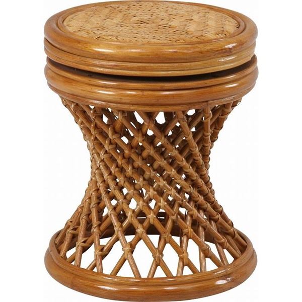 ■スツール イス バーチェア 椅子 カウンターチェア オットマン 足置き 約幅320×奥行320×高さ390mm ハニー 籐製 木製 360度回転 軽量 リ