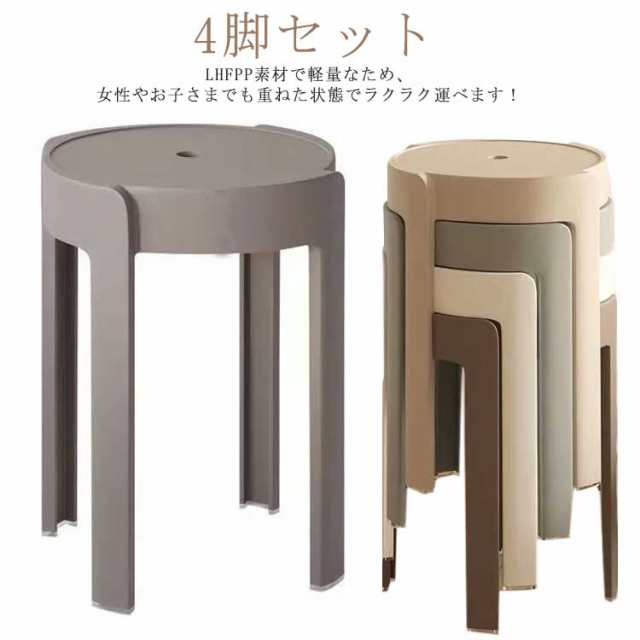 4脚セット!スツール 円形 コンパクト 高さ46cm 積み重ね スタッキング 省スペース 北欧 丸 椅子 軽量 持ち運びやすい インテリア ニュアンスカラー 送料無料 チェア ダイニングチェア 丸いす 簡易