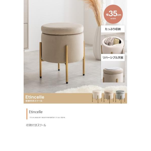 ■収納付き スツール おしゃれ ベロア かわいい 可愛い 丸 丸型 円形 ドレッサーチェア 椅子 いす 一人暮らし フェミニン 新生活 Etincelle