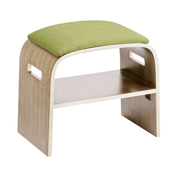 ■玄関椅子 (イス チェア) スツール バーチェア カウンターチェア 幅47cm グリーン 曲げ木 コンパクト 木製×ファブリック 座面下整理 収納
