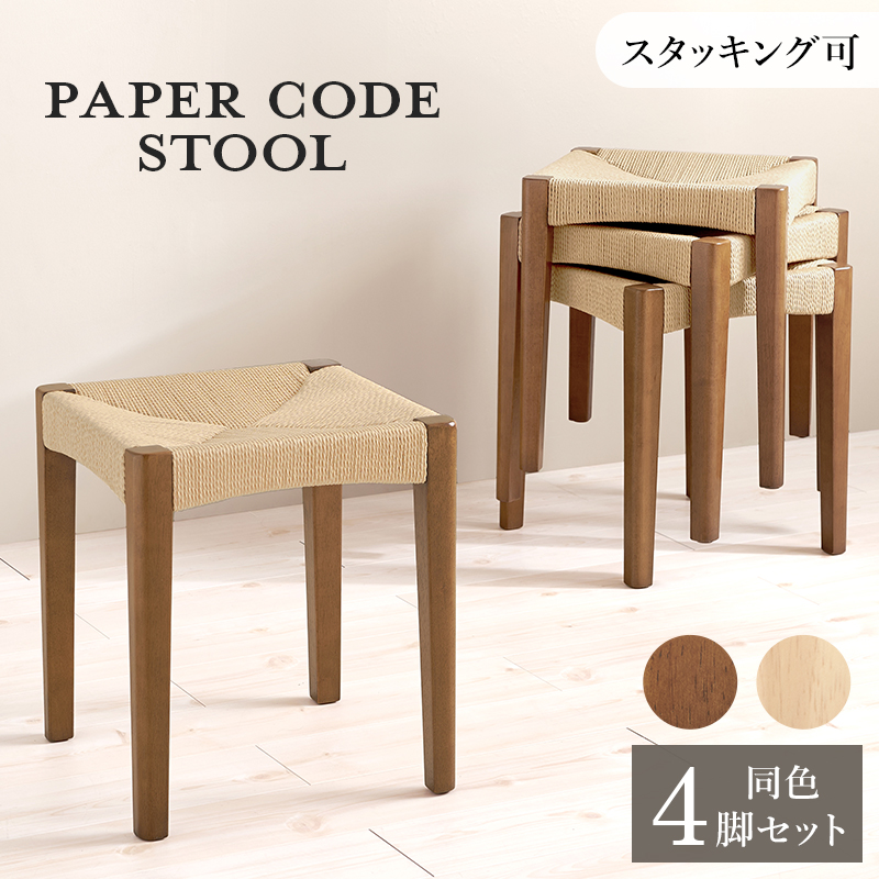 ■スツール 4脚セット 小椅子 CODE 34×奥行34×高さ45cm スタッキング可能 ペーパーコード ナチュラル ブラウン 北欧スタイル ドレッサー