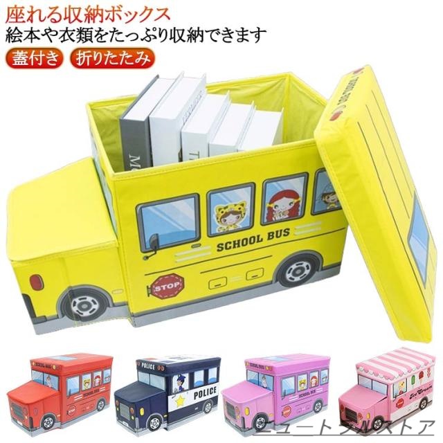 座れる 収納ボックス おもちゃ箱 収納スツール キャラクター おもちゃ スツール ふた付き かわいい収納 ボックス 子供 車 バス 乗り物 玩具 お片付け おかたづけ 箱 蓋付き フタ付き 折りたたみ 座れる収納 ストレージボックス
