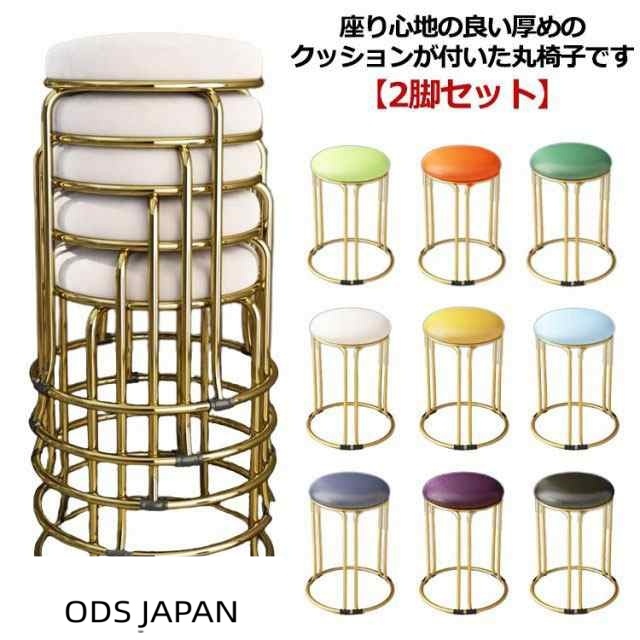 2脚セット スツール 丸 高さ46cm 円形 PU レザー 丸椅子 低反発 クッション チェア ダイニングチェア 北欧 おしゃれ 丸 椅子 イス いす 積み重ね コンパクト 金脚 くすみカラー シンプル 高級感 モダン 玄関 ダイニング リビング ゴールド脚