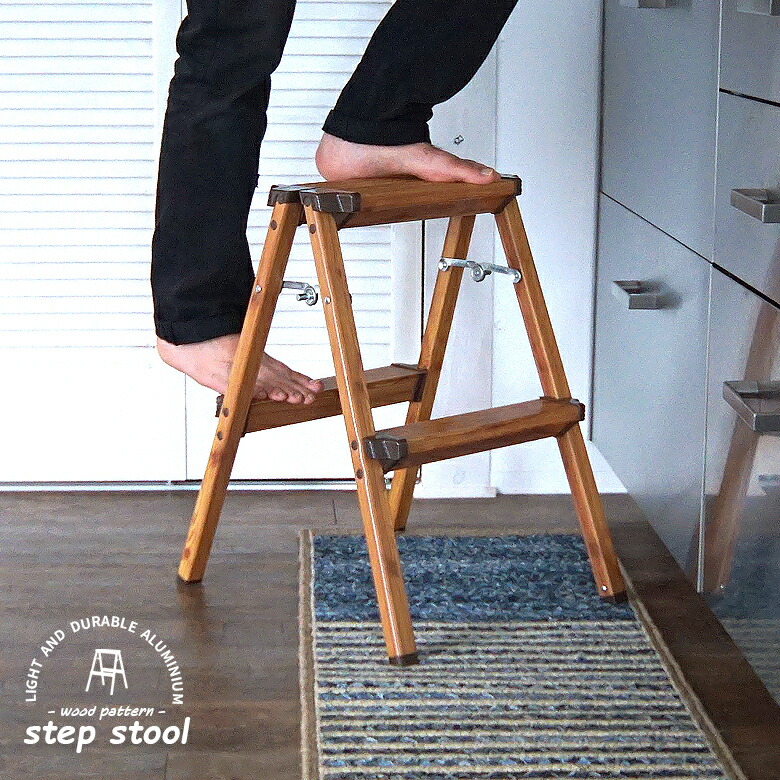 ■木目調ステップスツール Mサイズ スツール 脚立 折りたたみ おしゃれ 踏み台 ステップスツール ステップ踏み台 ステップ台 2段 子供 男