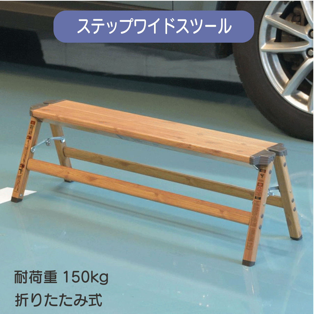 木目仕上げで飾りたくなるステップワイドスツール。脚立以外にもアウトドアや、車の洗車など使い方によって様々なシーンで大活躍。ちょっとした作業の腰掛として便利です。