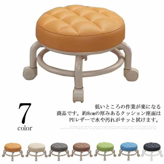 ■全7色 スツール 丸 極厚 5cm クッション 高さ25cm ロースツール キルティング キャスター付き 椅子 PU革 防水 ミニ スツール ローラーシ