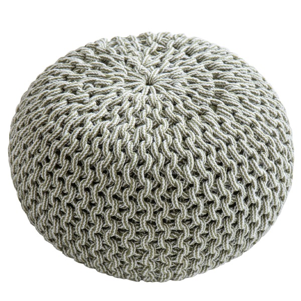 ■インド綿 スツール/オットマン 〔グリーン&ホワイト 約50R×35cm〕 綿100% ブレイド 〔リビング ダイニング 来客〕 【北海道・沖縄・離