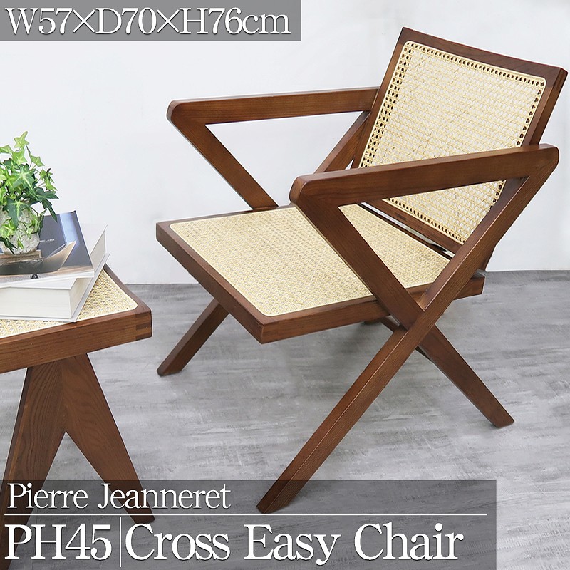 ダイニングチェア イージーチェア ラタン いす デザイナーズチェア 和モダン 現代 アンティーク Cross Easy Chair Pierre Jeanneret ピエール・ジャンヌレ 無垢材 お洒落