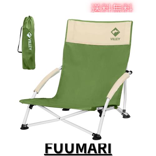 ■アウトドアチェアー 軽量 折りたたみアームチェア レジャー イス ロータイプ グリーン