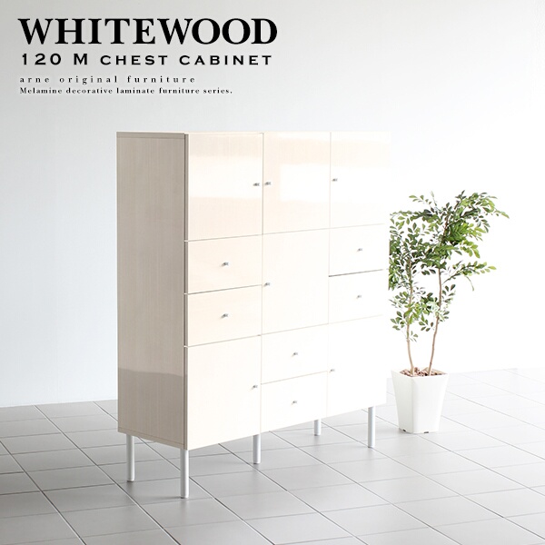 ■キャビネット 鏡面 おしゃれ 白 オフィス 完成品 ハイキャビネット サイドボード リビング 幅120 whitewood 120M chest cabi ☆