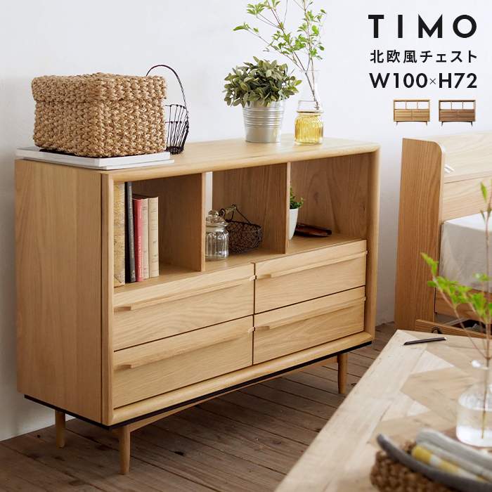 ■北欧風ローチェスト サイドボード チェスト オープンラック 引出付き 幅100 天然木 Timo ティモ