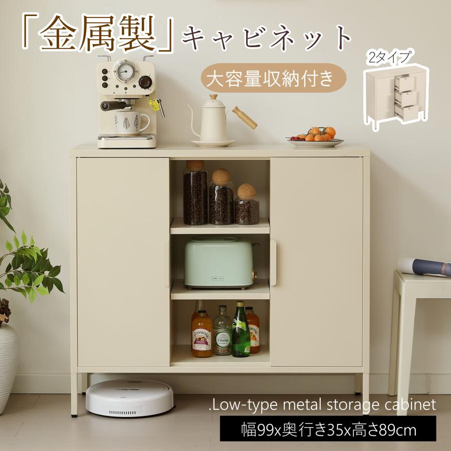 【特価セール】キャビネット スチール製 大容量収納 サイドボード 収納棚 扉付き おしゃれ 取っ手 両開き 収
