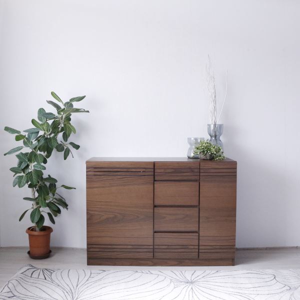 ■サイドボード 幅120cm 木目 背面化粧 天然木 完成品 ( チェスト 4段 A4対応 棚 ラック 引き出し 扉収納 収納 テレビ台 リビングボード