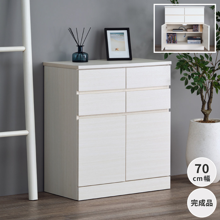 ■リビングボード サイドボード 収納家具 リビング収納 A4ファイル収納 幅70 ローボード 引出し 扉 配線 可動棚 ルーター収納 充電スポット