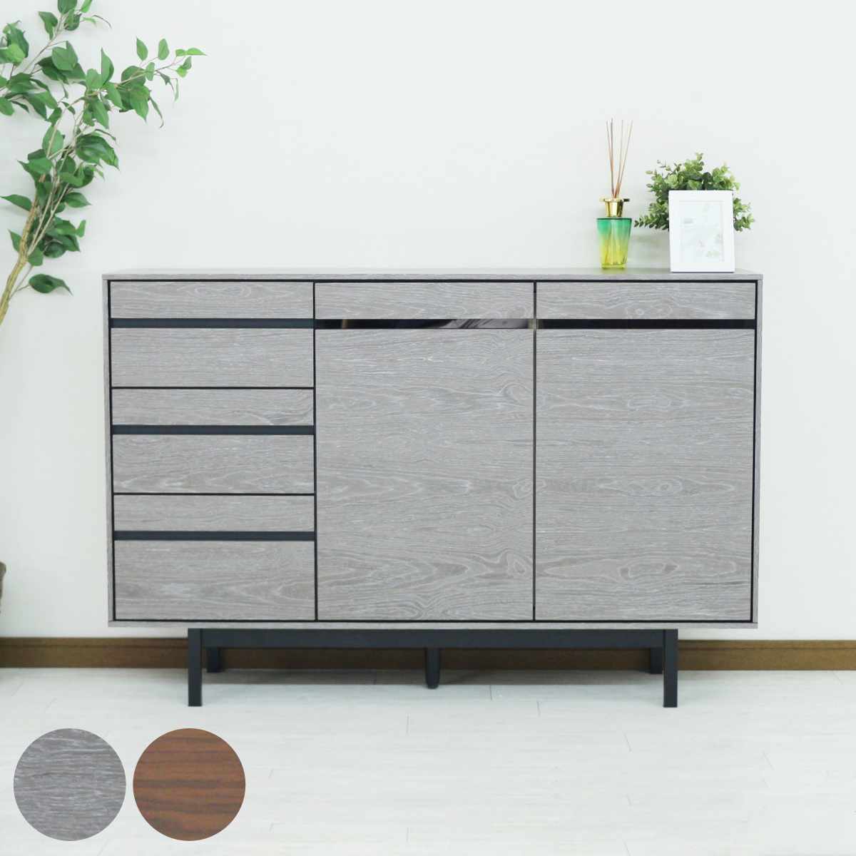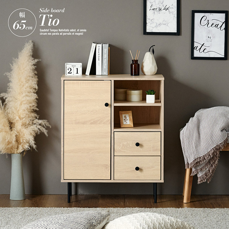 ■サイドボード キャビネット コンソール リビング収納 収納棚 チェスト 扉付き収納 引き出し収納 オープンラック 木製収納 スリム収納 北