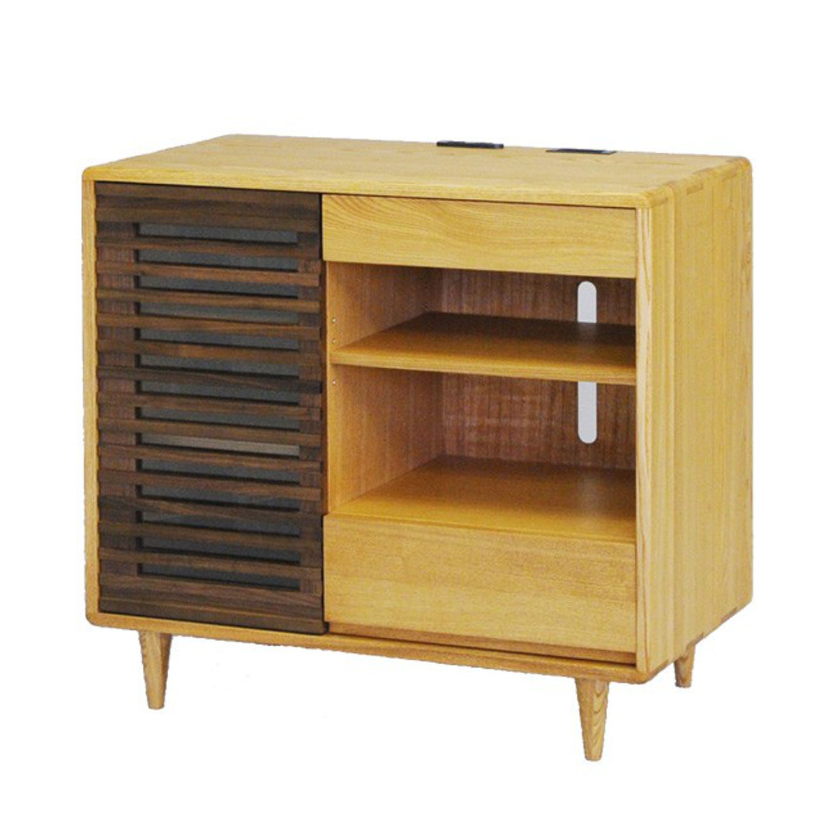 ■AVキャビネット 幅85cm サイドボード ルーバーデザイン 無垢材 ( 開梱設置 天然木 タモ ウォールナット キャビネット 収納 チェスト リ