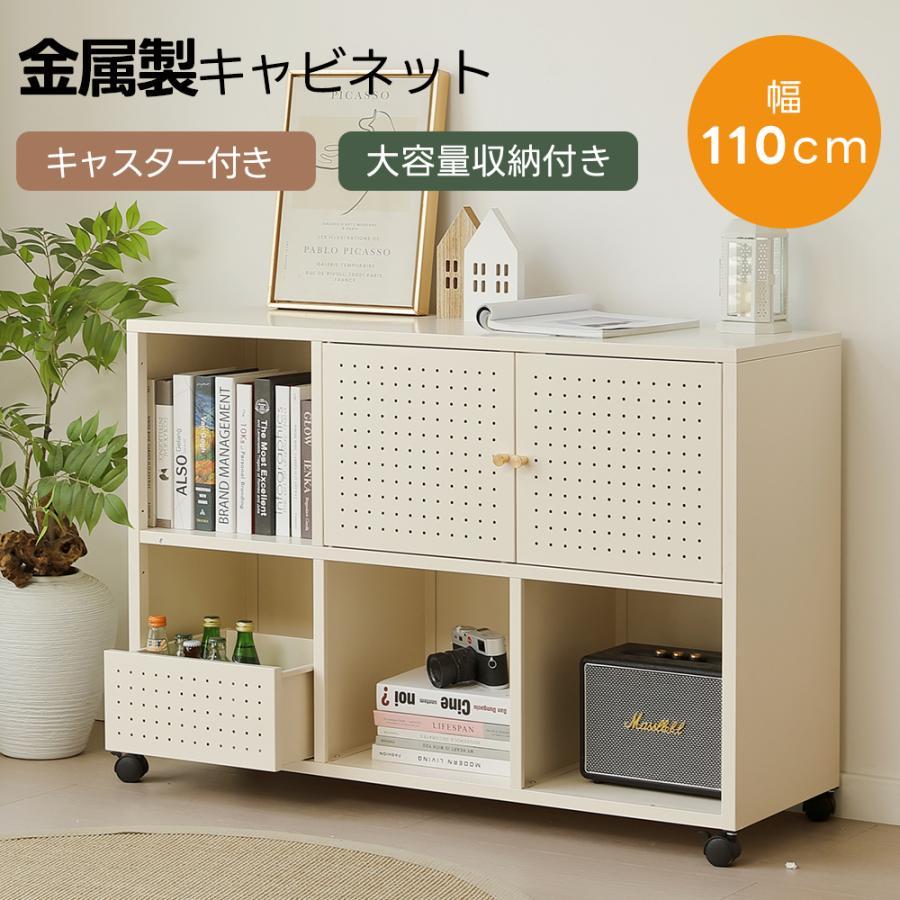 ■キャビネット 金属製キャビネット 収納棚 幅110 扉付き サイドボード 収納棚 おしゃれ リビング モダン 棚 書類 コード穴 扉 取っ手 ホワ