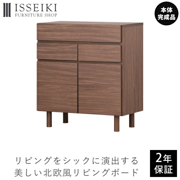 リビングをシックに演出する、美しい北欧風リビングボードです。引き出し3杯と容量のある収納スペースが魅力的な、幅70cmの脚付きリビングチェストです。【一生紀オリジナル】