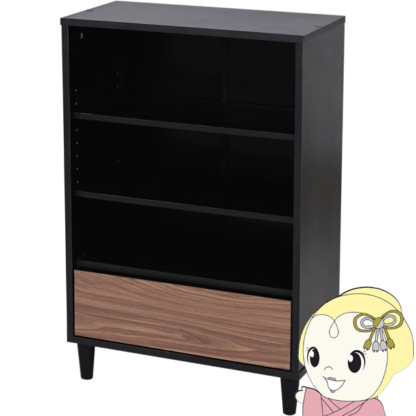 ■カラー:ブラック×ブラウン【BKBR】 ■サイズ [外寸]幅60×奥行29.5×高さ90(アジャスター80.5)cm [内寸] (オープン部)幅56×奥行25.5×高さ57.5cm (可動棚)幅56×奥行25.5×厚み1.5cm(3.2cmピッチ9穴) (引き出し)幅51×奥行23.5×高さ9.5(有効11)cm ■素材 [本体]プリント紙化粧合板 [天板]合成樹脂化粧合板(PVC) [引き出し前板]プリント紙化粧繊維板 [脚]天然木 ■耐荷重 [天板]約10kg以下 [可動棚]各約5kg以下 [扉内固定棚]約5kg以下 [引き出し]約5kg以下 ■備考 ・可動棚2枚 ・背面化粧なし ・脚裏フェルト付き ・アジャスター付き ■組立時間(目安)(大人2人) お客様組立(30分) ※お客様組立て品につきましては、組み立て後に不良の連絡をされても対応ができません。 組み立て前にパーツに不良・傷等がないか、必ずご確認下さいます様よろしくお願い申し上げます。 ※記載は商品仕様の一部です。仕様説明不足等の理由での返品はできません。特に適合等は必ずご確認ください。