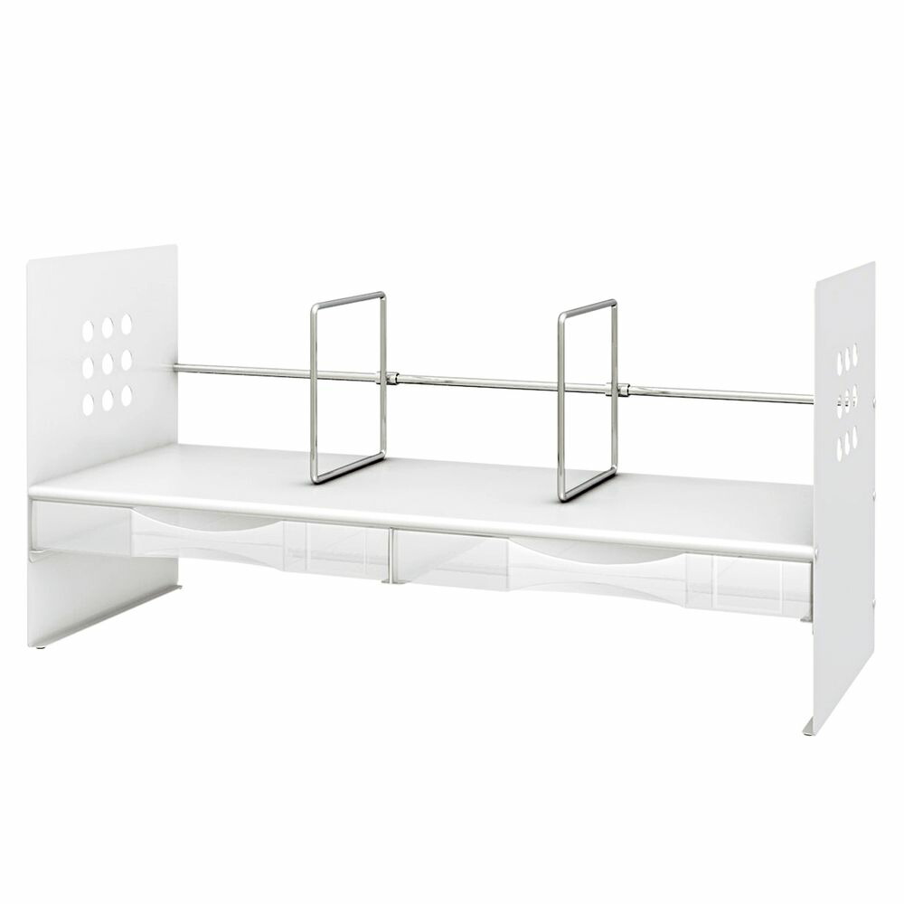【商品説明】高級感がある、丈夫なスチール製ブックスタンド!高級感がある、丈夫なスチール製ブックスタンド。モニター・キーボード・ノートパソコンの収納を考えた「H型」。H型は上にモニターを置いたり、棚下スペースにノートPCやキーボードを収納でき、机上スペースを有効活用することができます。A4書類が入る引き出し付きで、書類の他に机上で散らかりやすい小物類もスッキリ収納できます。スライド式本立仕切棒は、好きな場所に移動できる仕切棒です。サイドもスチール製なので、マグネットボードとして利用できます。【詳細】商品サイズ:W650×D250×H324mmカラー:ホワイト材質:本体:スチール、ケース=51%再生ポリスチレン(PS)規格:H型ケース付質量:5.4kg本立仕切棒(スライド式):2本棚下有効寸法:80mmケース内形寸法:W314×D217×H36mm●見出しカード付