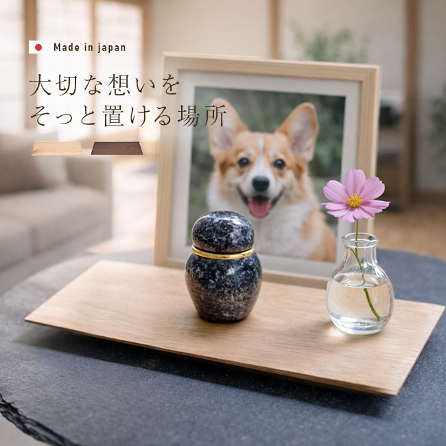 木製トレー 台座 木製 置き台 おしゃれ 木製トレイ 滑り止め 四角 正方形 スクエア 敷台 かさね敷板 手元供養 台 骨壷 おりん 仏具 小さい ミニ骨壷 置台 高級 木板 ミニサイズ ミニ仏具 シンプル モダン デザイン 仏壇 リビングの棚やサイドボードなど、日常の風景に自然に溶け込む祈りのステージを提案します。 この敷板は、熟練の職人が一つひとつ丁寧に作り上げています。 無垢材ならではの温かみのある質感と、縁に施された繊細な傾斜デザインが特徴です。 一枚でシンプルに使うのはもちろん、重ねて使用することで立体感と存在感が生まれます。 裏面には滑り止め加工を施しており、安定して設置できる実用性も兼ね備えています。 手元供養だけでなく、お気に入りのオブジェや花瓶を飾る展示台としても重宝します。 和洋を問わないスタイリッシュなデザインが、置くものをより上品に引き立ててくれます。 【日本製か海外製か】日本製 【サイズ(約)】180×90×10mm 【仕様】裏面滑り止め付、縁傾斜デザイン 【お手入れ方法】やわらかい布で乾拭きしてください。