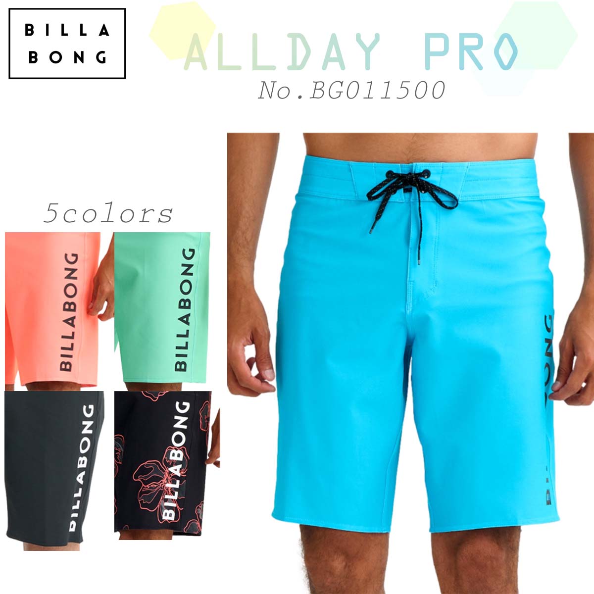 26 SS BILLABONG ビラボン ボードショーツ ALLDAY PRO 水着 海パン ズボン 短パン ボトムス サーフィン マリンスポーツ アウトドア メンズ 2026年春夏 品番 BG011500 BG011-500 日本正規品 BILLABONG ボードショーツ ALLDAY PRO 縫製箇所を最小限に抑えた立体パターンを採用し、伸縮性とパフォーマンス性を向上させたPROモデルのALLDAYボードショーツ。 サイドのUNITYロゴが特徴的な人気デザインです。 リサイクルペットボトルを原料とした4WAYストレッチ生地を使用し、快適な履き心地にこだわりました。 撥水・速乾性に優れ、ドライな履き心地が持続するマイクロレペル・コーティングを採用。 右側のヒップにはキーループ付きフラップポケットを搭載。 レングス20インチ。 ■品番■ BG011-500 ■カラー■ AQU(ブルー) BLK(ブラック) BRP(ピンク) CHR(ブラックフラワー) LMG(ミント)