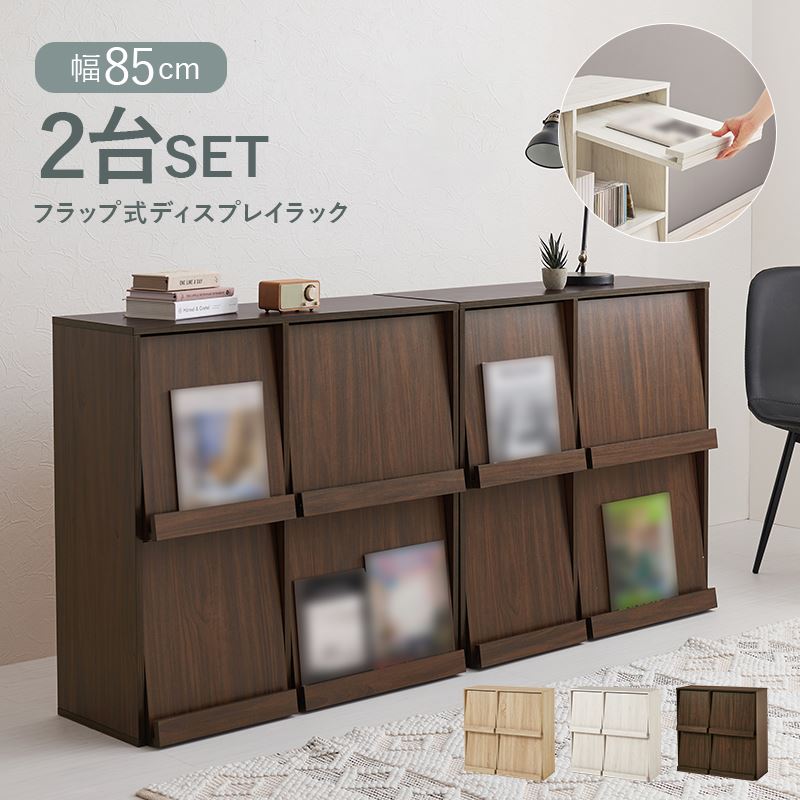 ■ディスプレイラック フラップ扉 2列2段 2台組 キャビネット サイドボード 収納ボックス 積み重ね対応 横置き 縦置き セパレート