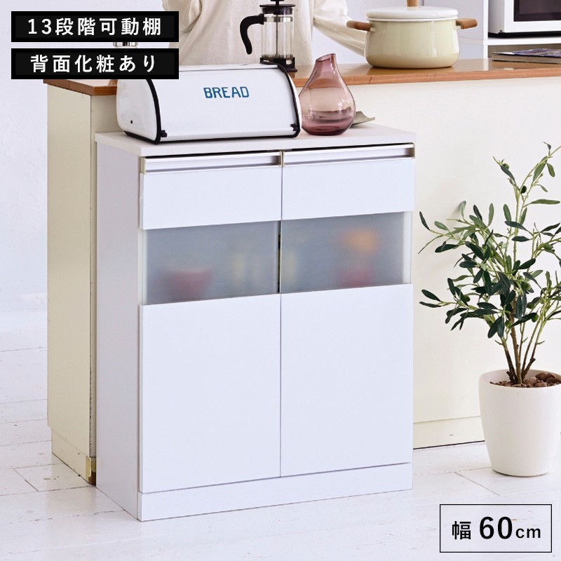 ■ディスプレイラック 幅60cm キャビネット フラップ扉 サイドボード リビングボード スリムラック FSI-0002-JK