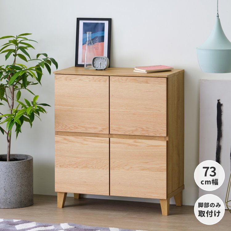 オーク チェスト 収納家具 北欧 完成品 幅73 高さ85 扉 可動棚 木製 ナチュラル シンプル